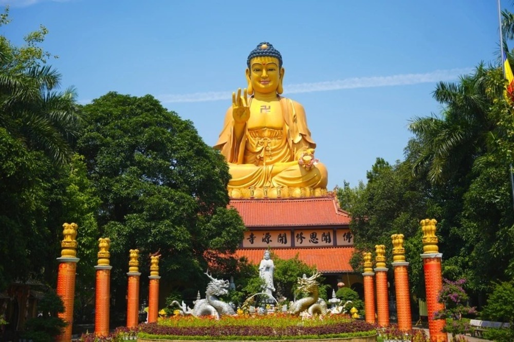 • Khi đến nơi, hãy đi từ cổng Tam Quan, chiêm bái các khu vực chính và kết thúc bằng việc chiêm ngưỡng pho tượng Phật A Di Đà khổng lồ.